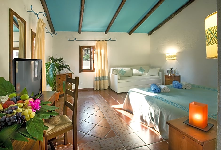 With traditional Sardinian furnishings, this air-conditioned room faces the sea or shared garden. It includes a TV, mini-bar and a private bathroom with hairdryer. These units are located in the most exclusive area of the resort and are located between 50 to 328 feet from the sea.