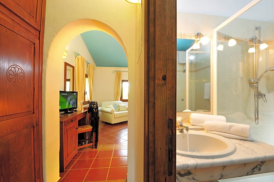 With traditional Sardinian furnishings, this air-conditioned room faces the sea or shared garden. It includes a TV, mini-bar and a private bathroom with hairdryer. These units are located in the most exclusive area of the resort and are located between 50 to 328 feet from the sea.